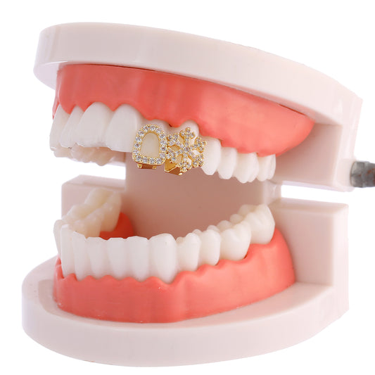 Dual Iced Hollow Tooth and Inverted Heart Grill
