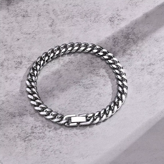 8MM Silver Stainless Steel Cuban Chain Bracelet